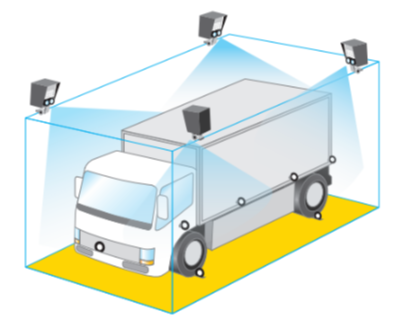 自動車を取り囲むようにステレオカメラを設置し、数秒の撮影でポイントの座標を取得、即座に座標間の距離を算出することで複数個所の寸法を同時に計測することができます。また、オプション装置を組み合わせることで、さらなる自動車検査の高度化と自動車整備等のアフターマーケットに貢献しています。